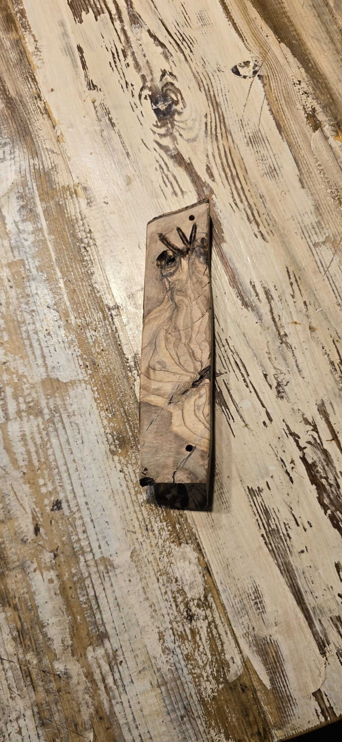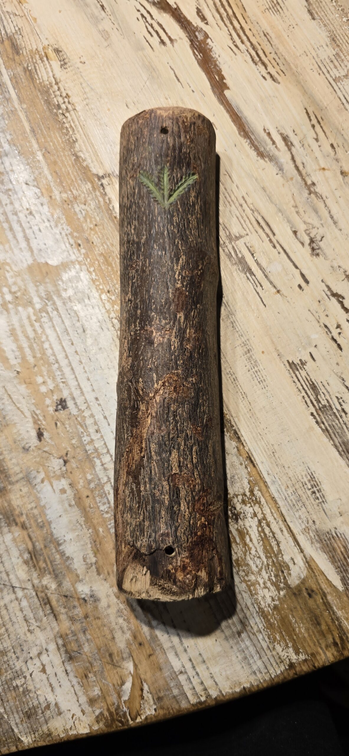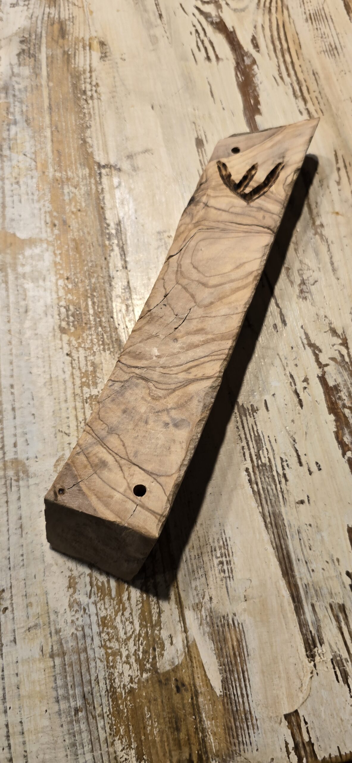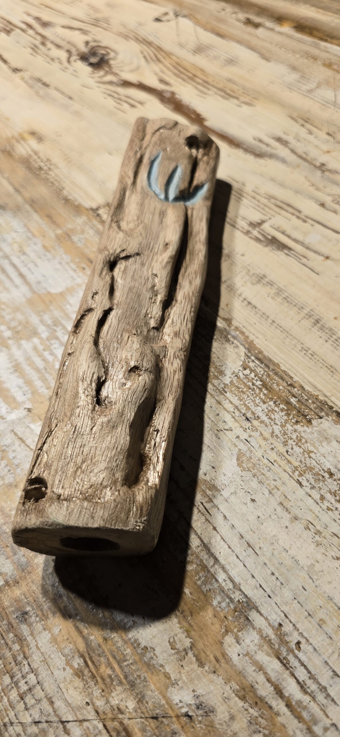 מזוזה מעץ טבעי, בעבודת יד, מתוך הקשבה לחומר ולשקט שהוא מביא איתו.